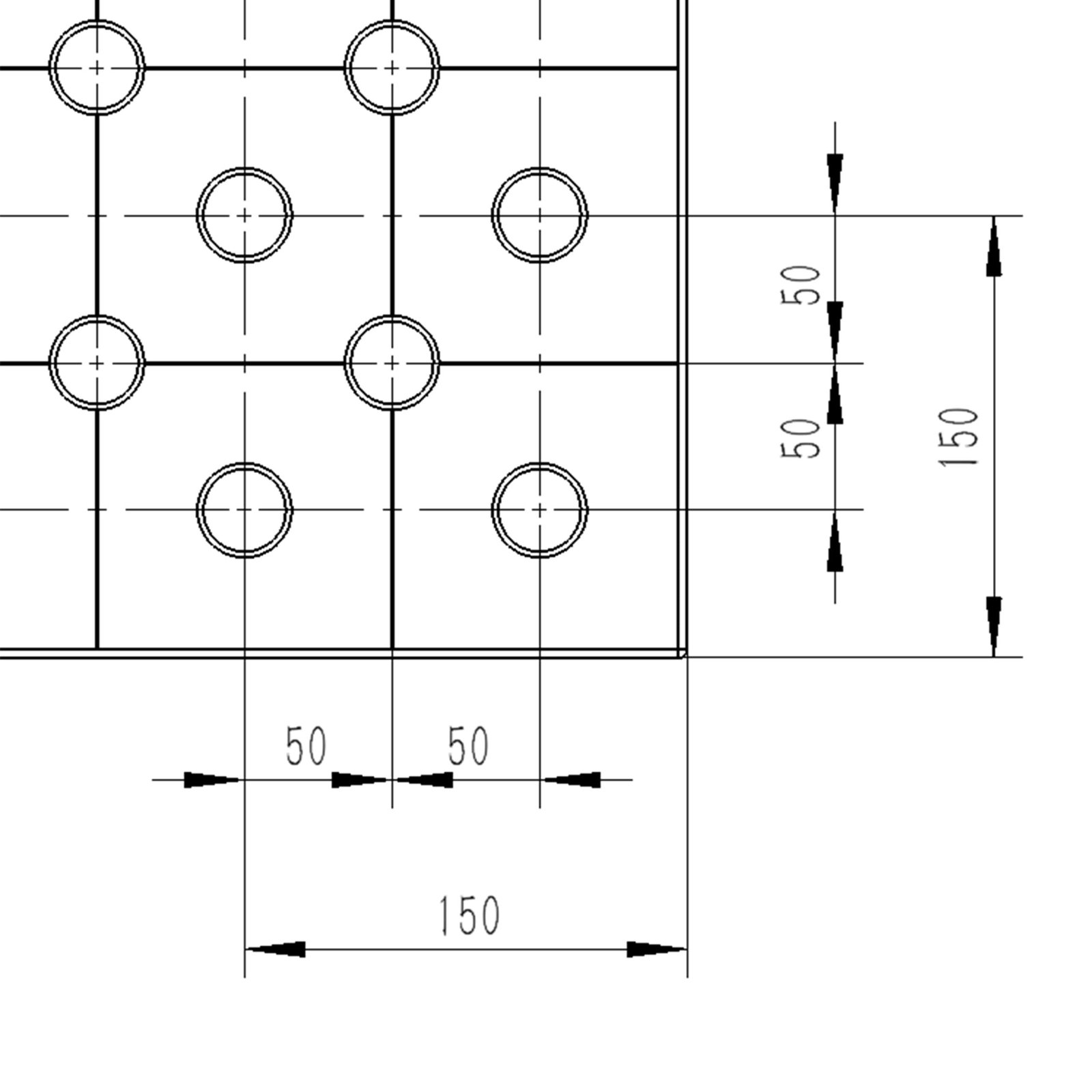 With D28 system holes, grid 100 mm x 100 mm